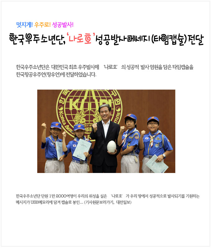 | [보도] 나로호 성공발사 기원 타임캡슐 전달 | ||