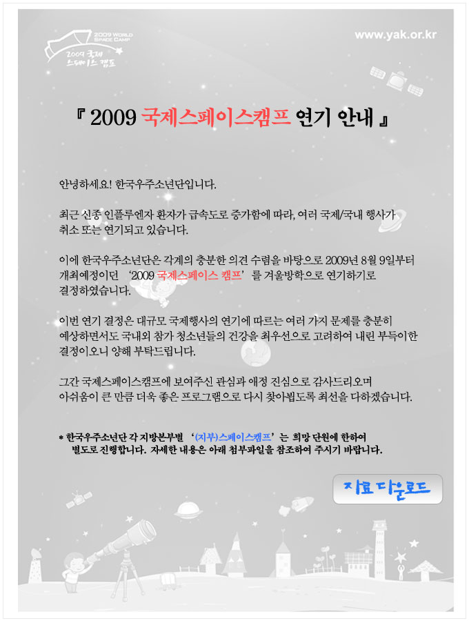 | [안내] 2009국제스페이스캠프 연기 안내문 | ||