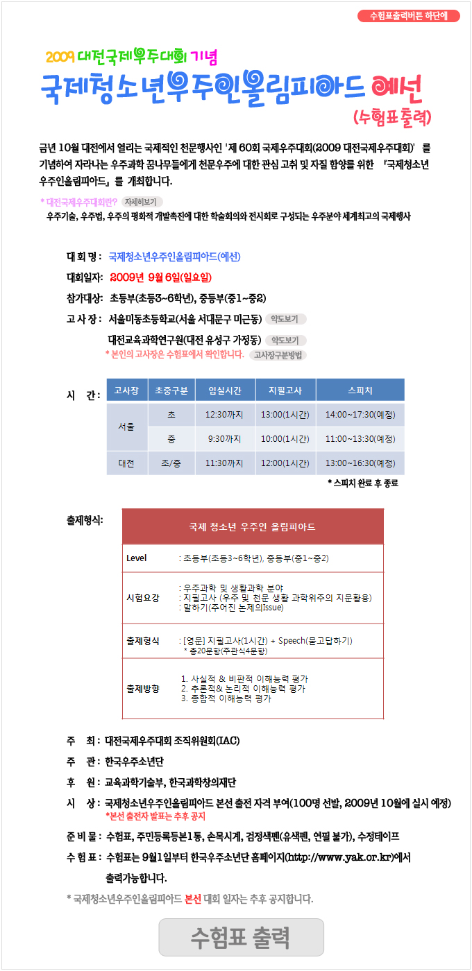 | [안내] 국제청소년우주인올림피아드 예선안내(수험표출력) | ||
