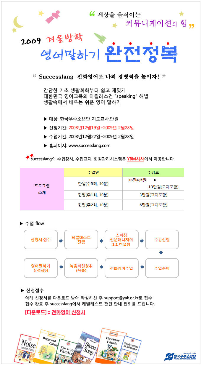 | [방학특강] 2009 겨울방학 영어말하기 완전정복! | YAK | 2008-12-19 | 2889 |