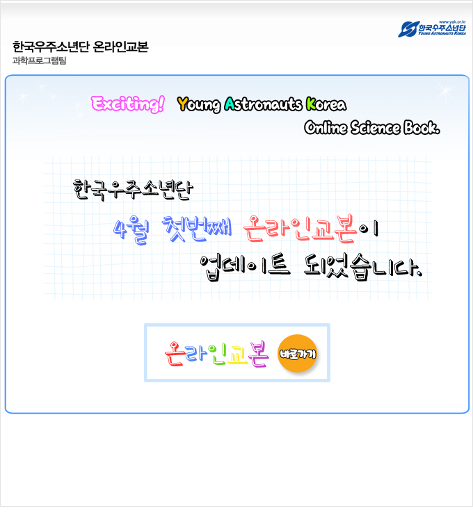 이번 시간에는 망원경의 가장 기본적인 형식인 경위대식 굴절망원경의 사용법을 알아볼까요~~? 아래 '온라인교본 바로가기' 버튼을 클릭하세요! |